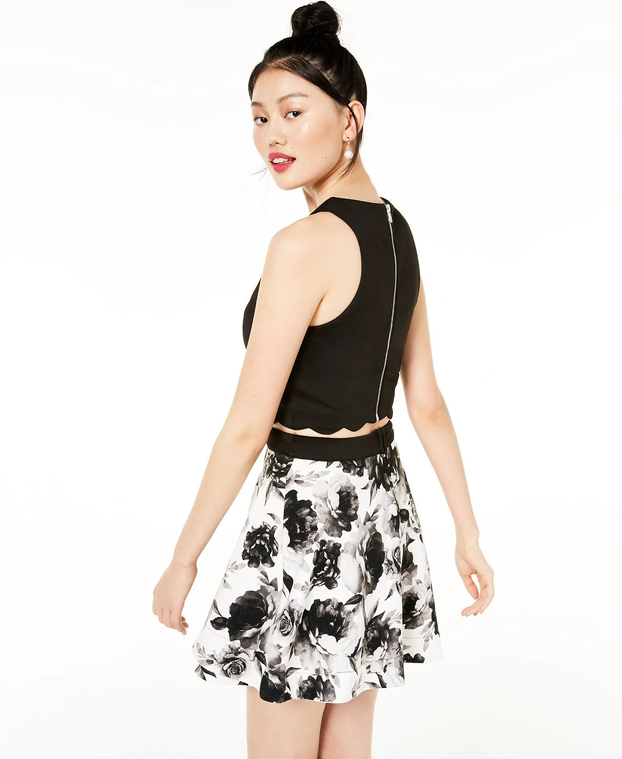 Speechless Juniors' 2-Pc. Scalloped & Floral Dress White Size 13