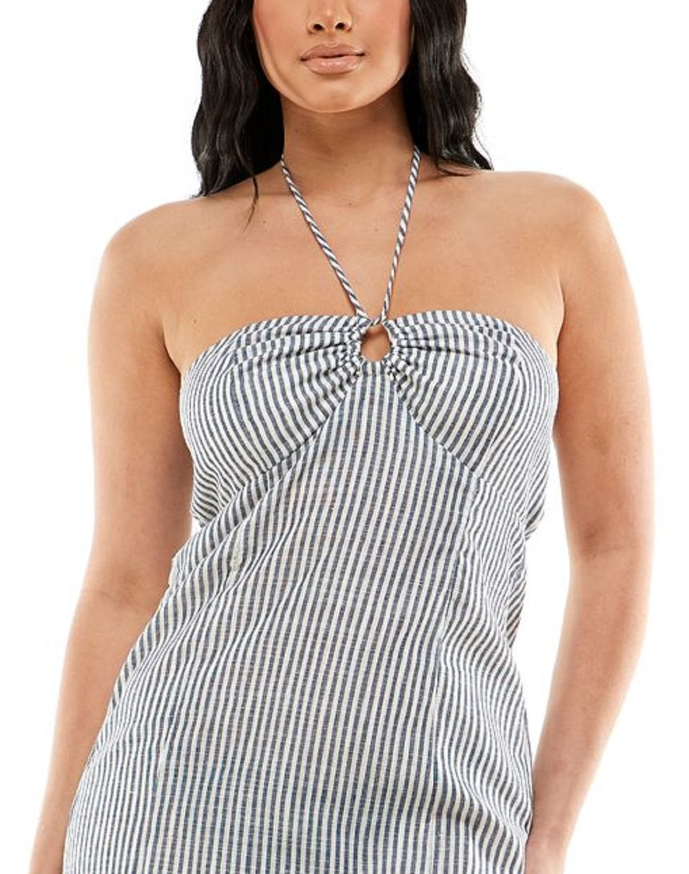 Speechless Junior's Striped O Ring Halter Dress White Size XX-Small