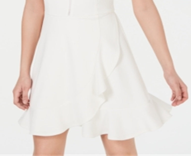 Speechless Women's Stretch Zippered Ruffled Sleeveless Halter Short Fit Flare Dress White Size X-Large