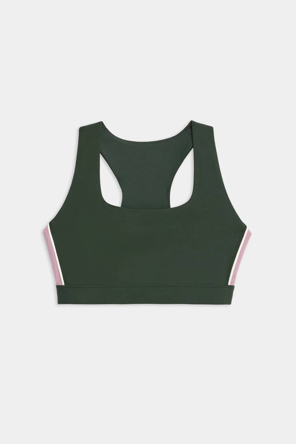 So comfortable you can sleep in it, lounge in it, or work out in it. Elevate your workout wardrobe with the Lexi Rigor Sports Bra by SPLITS59, available in a stylish Military & Blush color combination. This sports bra features wide racer back and a high neckline, offering longer length for added support and coverage during intense workouts. Crafted from a durable nylon blend of 62% Nylon and 38% Spandex, this piece ensures flexibility and comfort. Designed for women who love athleisure, it's perfect for running, cycling, and more.