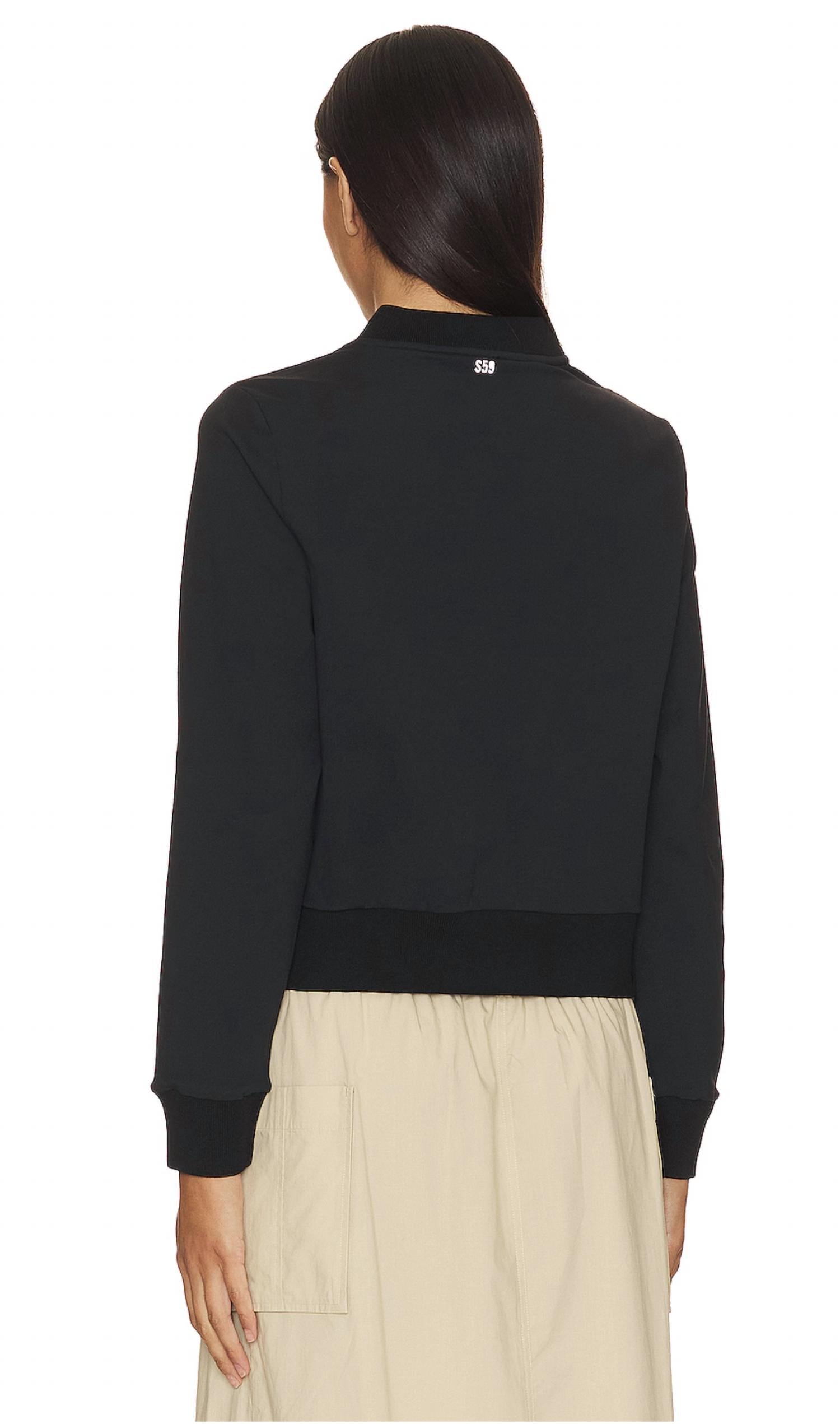 A riff on your favorite classic bomber jacket. Crafted from a Nylon Blend, this long sleeve jacket offers a mid-weight design ideal for layering, enhanced with a semi-fitted silhouette that flatters your shape. The full-zip closure and side-zip pockets add practical touches, while ribbed detailing at the collar, hem, and cuffs provides a classic finish.