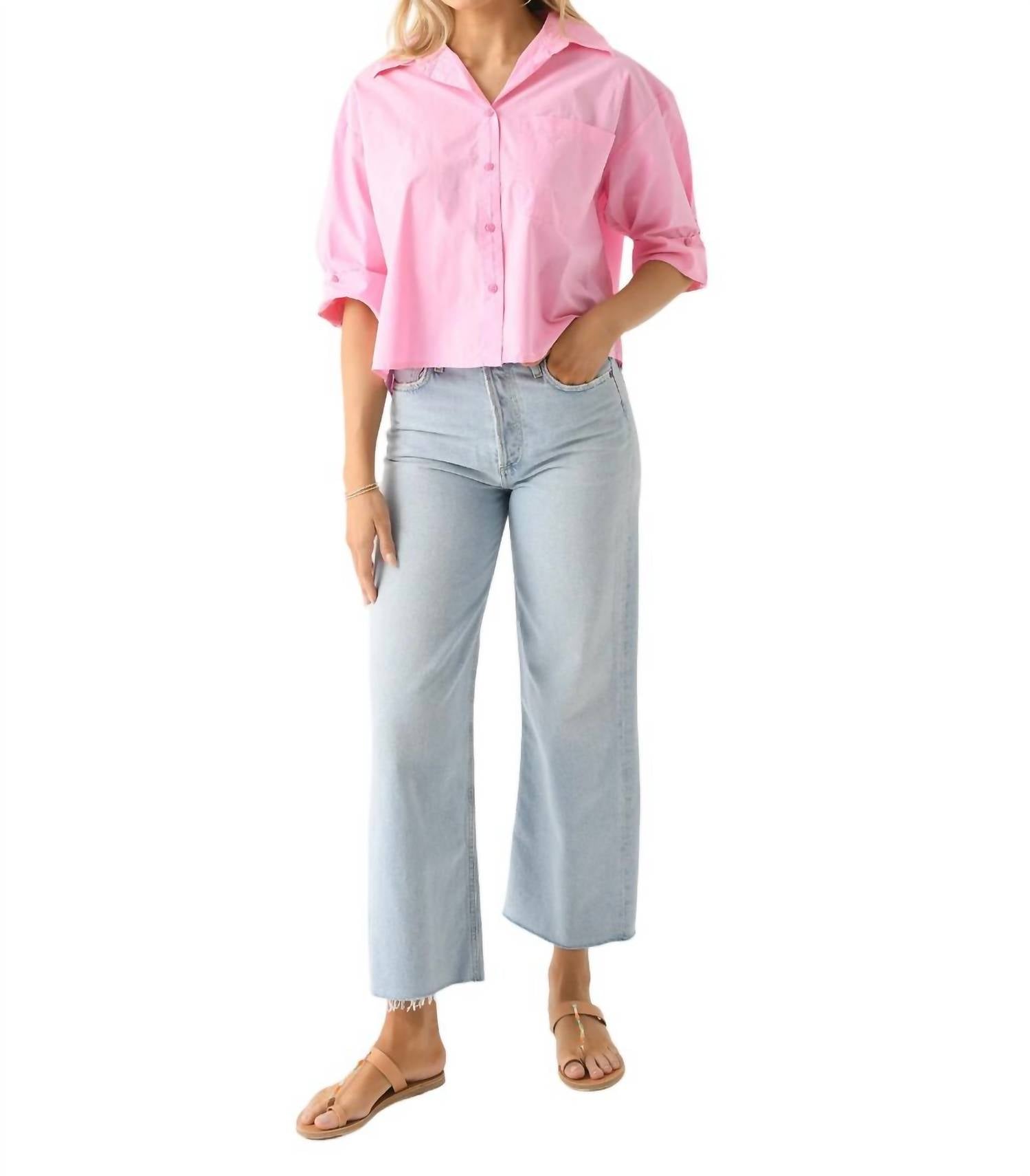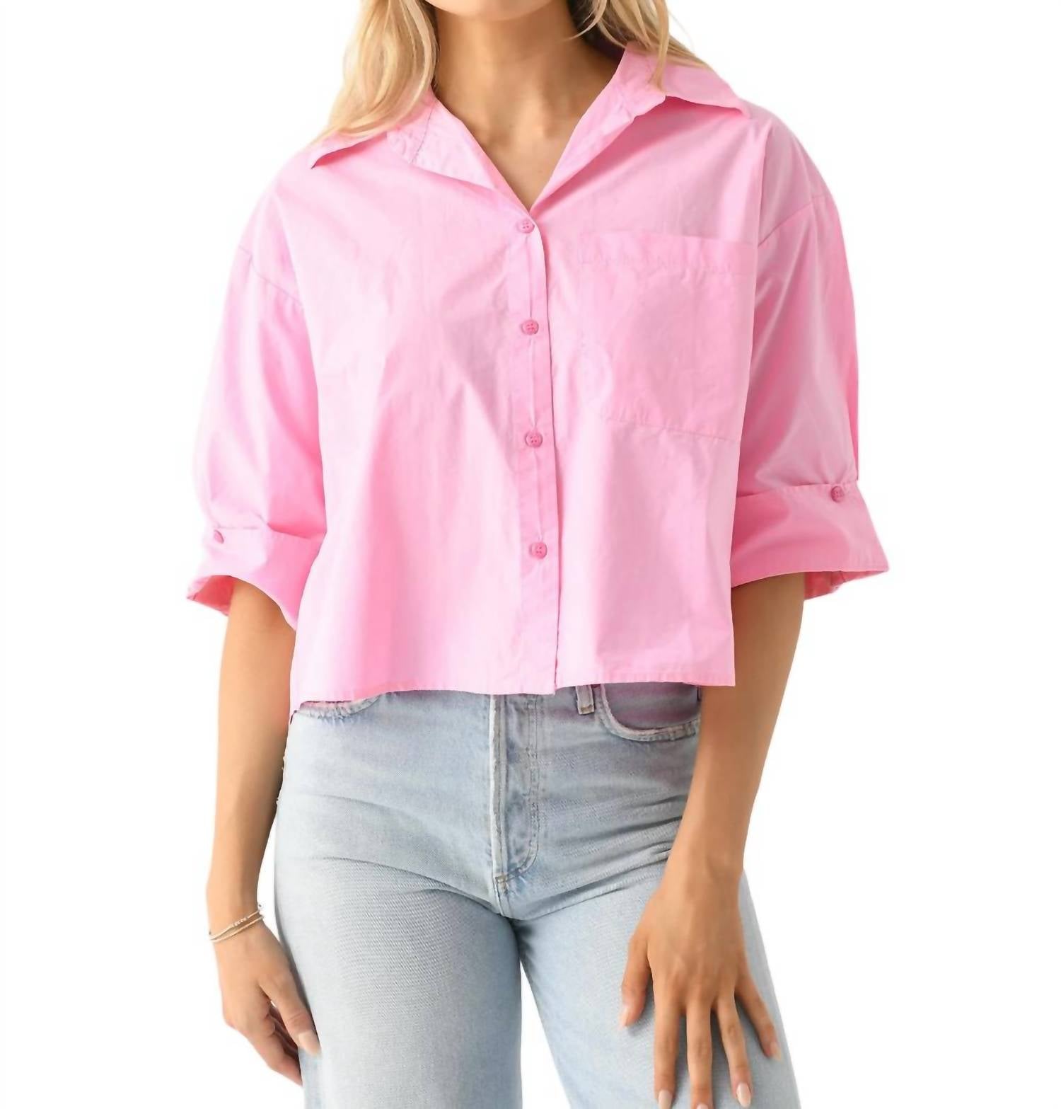 A classic button down shirt that will never go out of style.Slightly cropped button-down blouse made from lightweight cotton. Features a spread collar, dropped shoulder, left chest pocket, button cuffs, button-down placket, and relaxed fit. 100% Cotton.