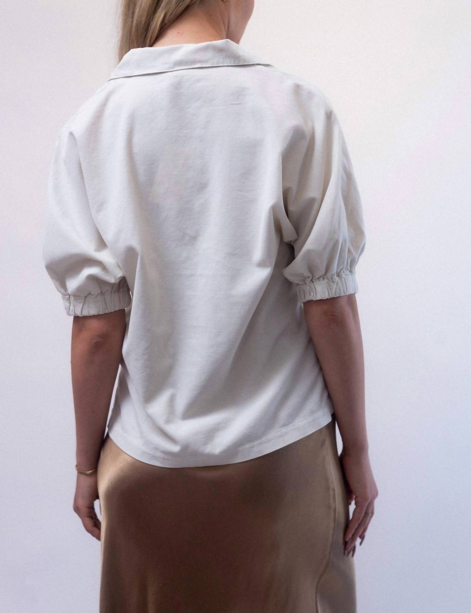 This top features half/elongated elbow-length sleeves and a collared V-neck. It has a pull-on design and is made from 100% cotton corduroy. Machine wash cold. Tumble dry low or hang to dry.