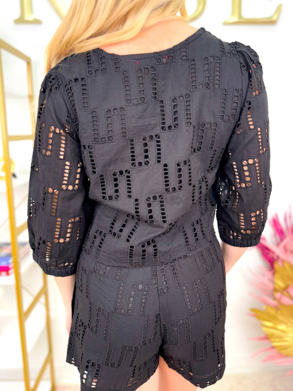 A timeless blouse that will never go out of style. Discover the Poppy Top by STARKx, a stylish and breezy addition to your wardrobe. This black blouse features a textured, eyelet design with three-quarter sleeves and a classic crewneck, providing a sophisticated touch for any fall occasion. Crafted for women interested in preppy trends, this piece offers the ease of a pull-on closure. It is machine washable for your convenience.