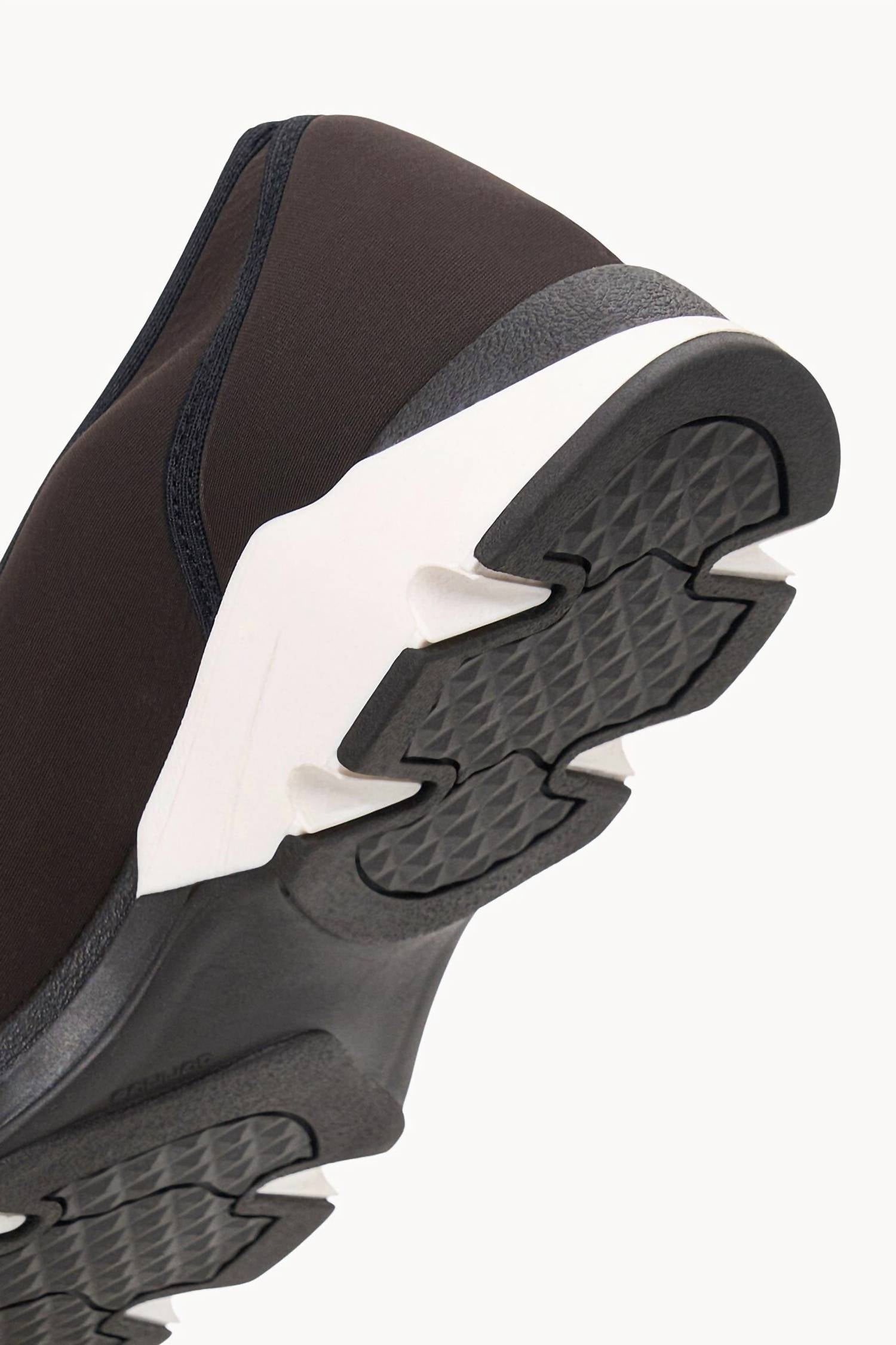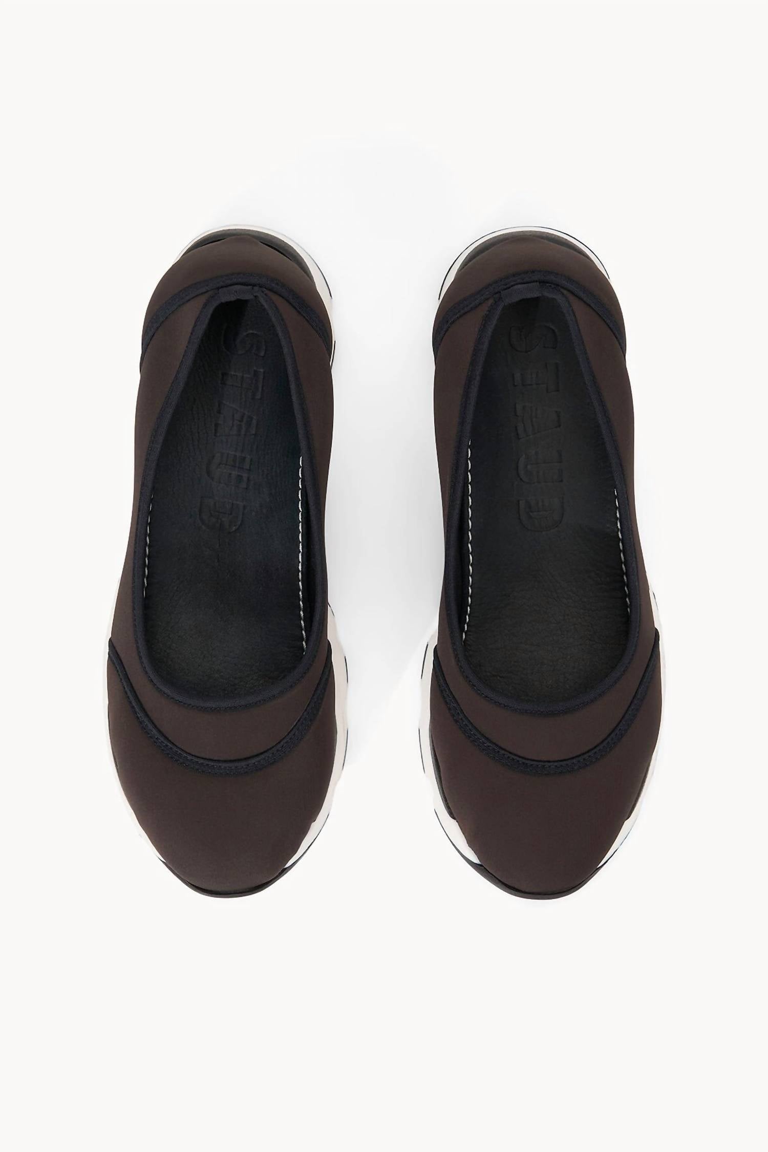 When fashion and function come together seamlessly. Experience the Women's Gino Ballet Glide by STAUD, a stylish fusion of sneaker and ballet flat design in chic Espresso/Black. These slip-on shoes feature a soft neoprene upper composed of 82% Polyamide and 18% Elastane, complemented by a durable 100% rubber sole. Ideal for summer game days, the round toe and padded insole provide maximum comfort. Designed for effortless wear, this versatile piece is a must-have for any fashion-forward wardrobe.