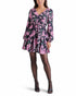 A flattering silhouette in an eye-catching blurred abstract floral print. Chiffon floral print mini dress. V-neckline, long sleeves. Elastic waistline with drawstring. Elastic cuff on sleeves. 100% polyester.