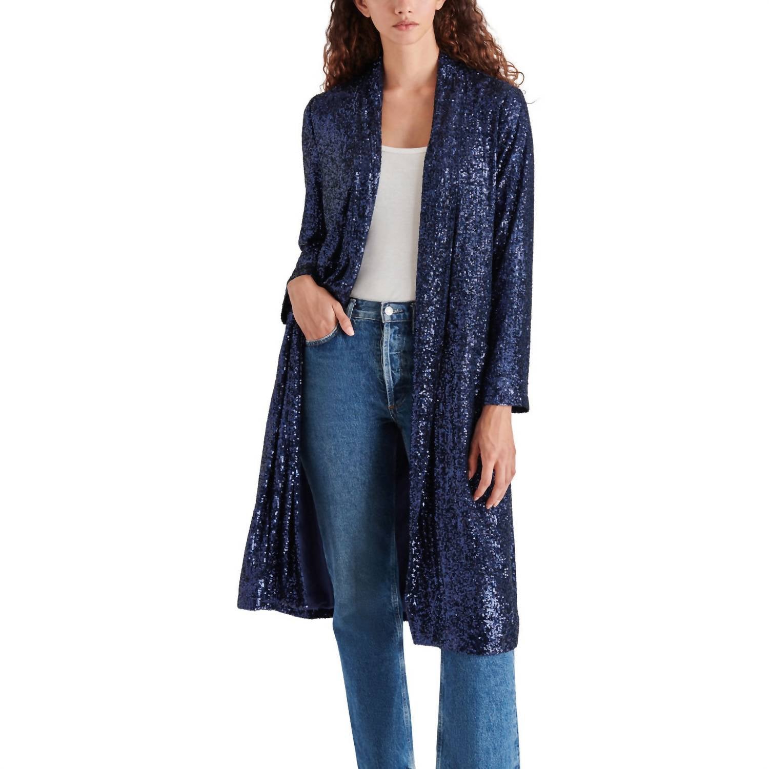 Throw this adorable cardigan over any cami or tank top. Slip-on styling for easy wear. Dazzling sequin fabrication for a sparkling, glamorous effect. Cinched waist detail to accentuate curves and create an hourglass silhouette. Below-the-knee length for an elegant and chic look. 100% polyester material. Wipe clean with a damp cloth and line dry for care.