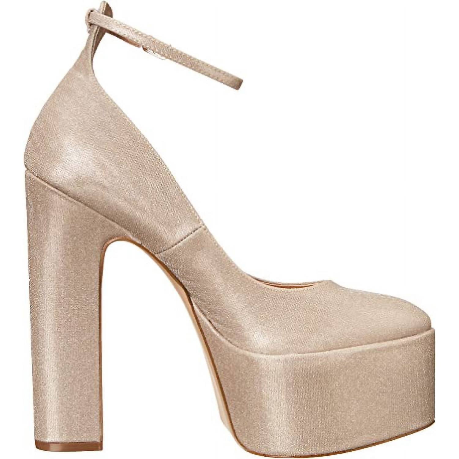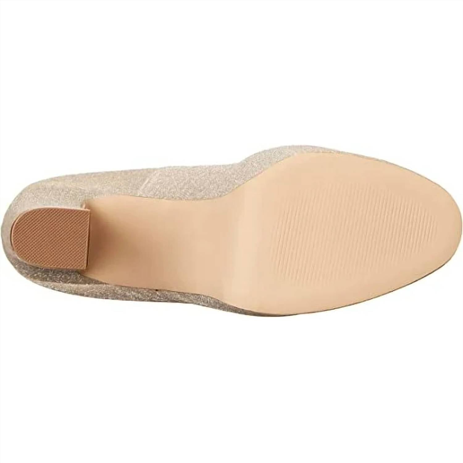 The perfect height for day to night. Synthetic rubber sole. Synthetic upper material and lining. Almond shape toe design. Adjustable ankle buckle closure. 6 inch platform block heel.