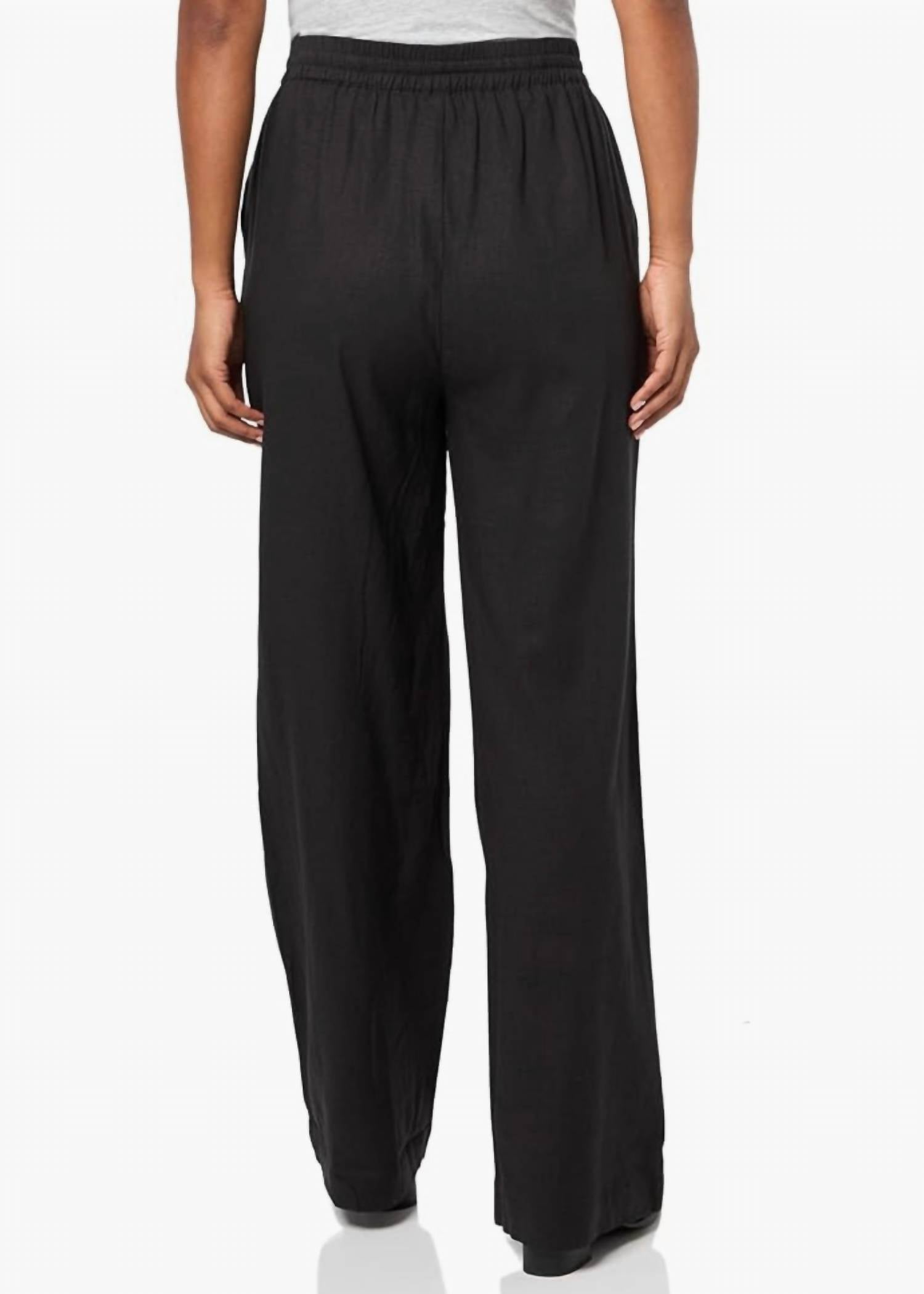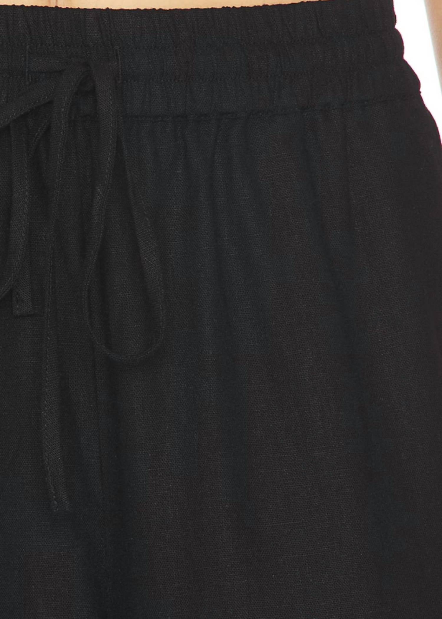 Elevate your wardrobe with the Venetia Pant from Steve Madden, featuring a relaxed wide leg silhouette in a chic black linen blend. These women's pants offer a pull-on closure for effortless wear, complemented by a wide reinforced stretch waistband for added structure. With a 55% Linen and 45% Viscose composition, they promise comfort and style. Care is simple with hand wash and line dry instructions; complete your look by pairing with the Wesley Vest. Inseam: 31.5 inches.