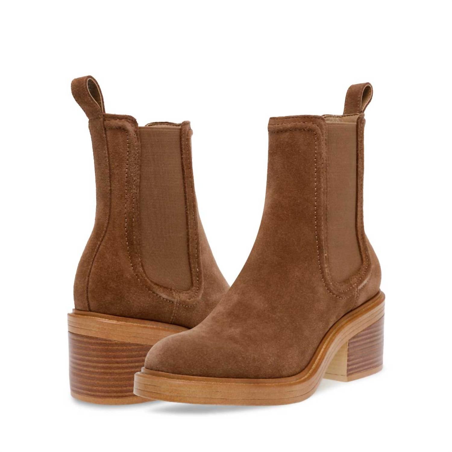 Say hello to the perfect, most versatile boot. The ankle height makes this style easily transition from day to night. Wear them with your favorite skinny jeans and tee for a more laid back look, or pair them with your favorite mini dress and jacket for a night out on the town. Step into fall fashion with the Steve Madden Curtsy Platform Chelsea Boot, a stylish must-have for the modern woman. Crafted from durable leather with a mid-block heel of 2.5 inches, these high-ankle boots provide elegance and comfort. The round toe shape and elastic gores ensure effortless style and easy slip-on convenience. Pair them with any outfit for a chic look that transitions seamlessly from day to night.