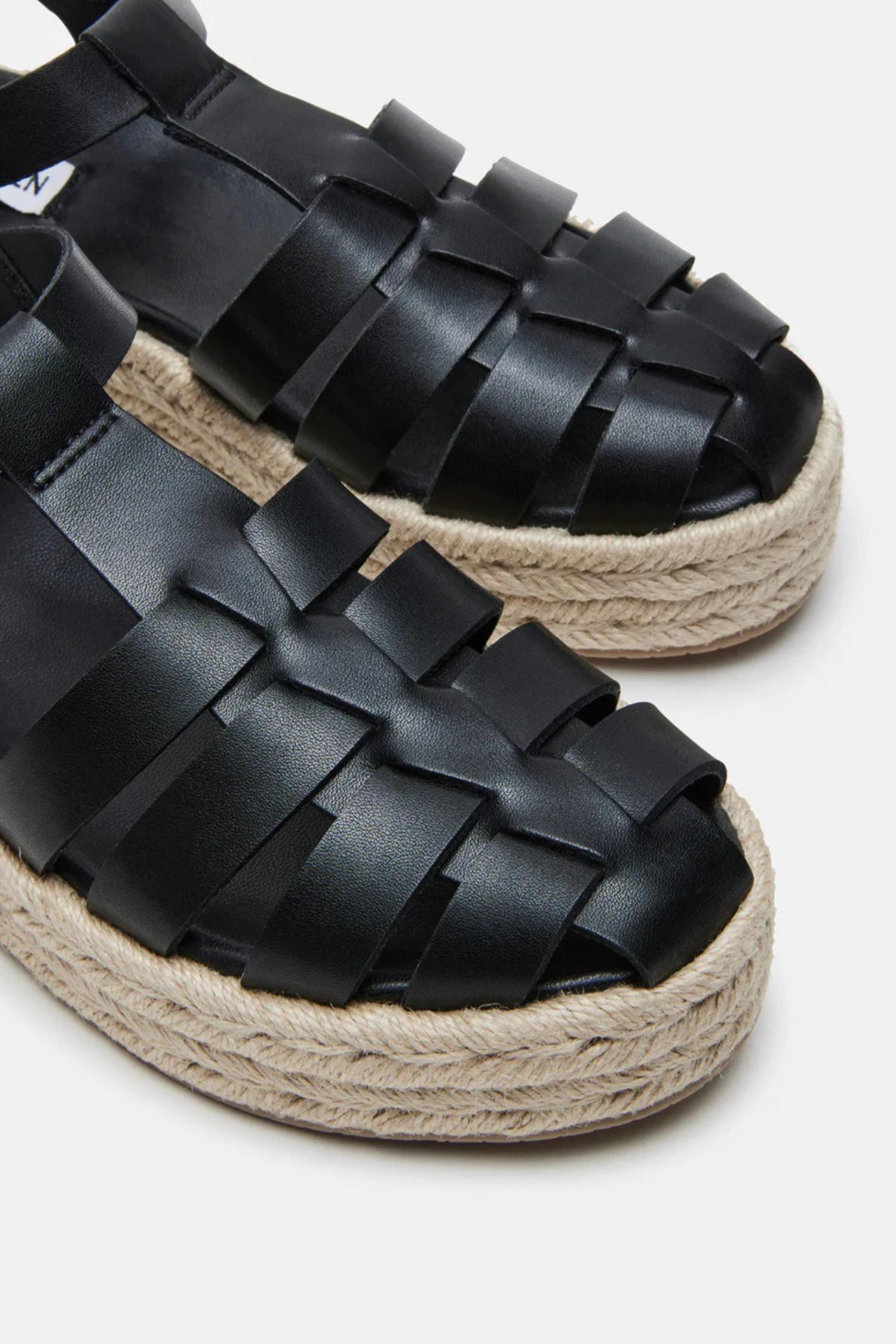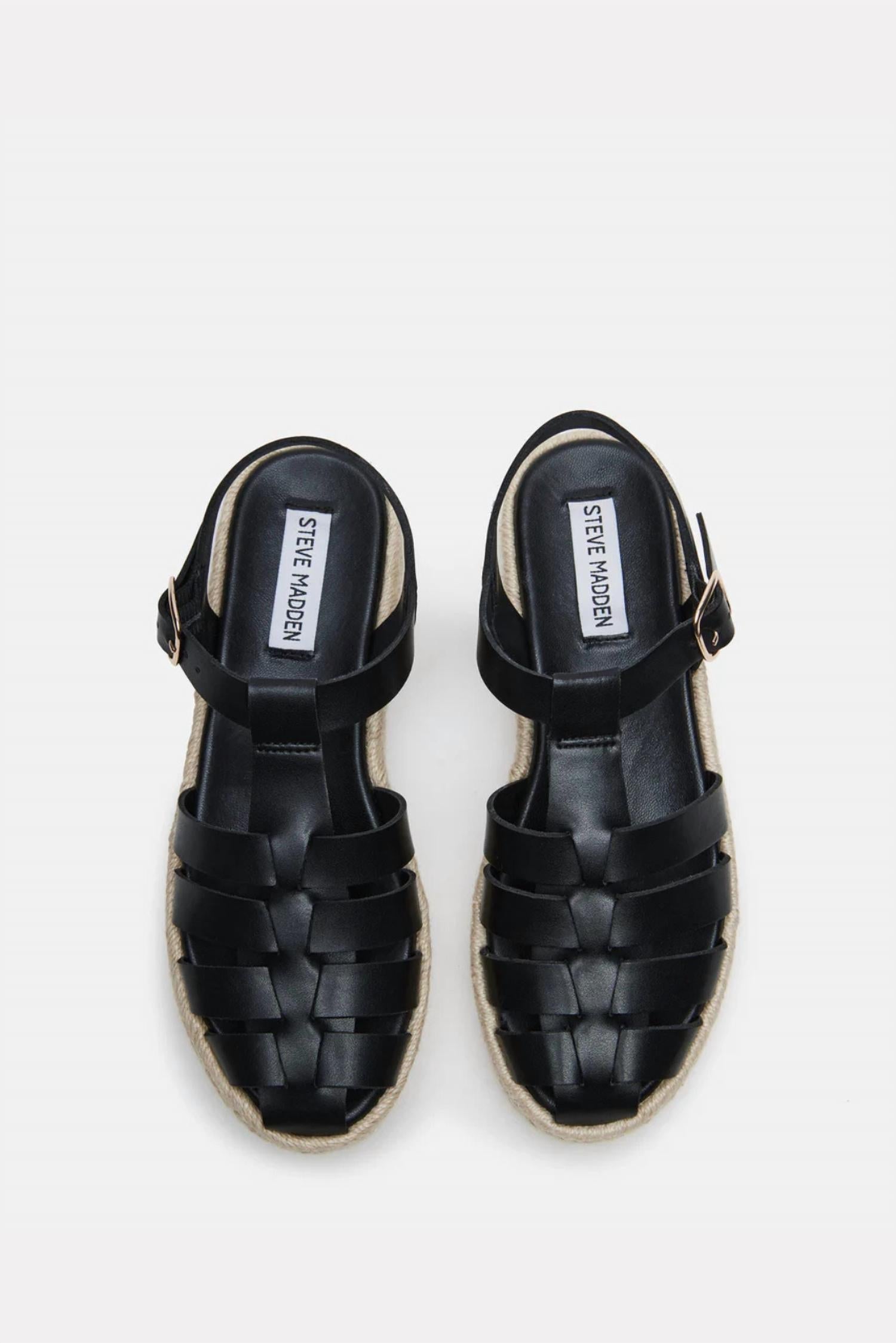 Classicly cute and all-day-wearable. We love this sandal. Step into comfort and style with the Women's Marlin Sandal by Steve Madden, a chic companion for your summer wardrobe. This sandal features a leather upper material with a stable 1.5-inch heel to add a touch of height without compromising on comfort. The synthetic lining, sock, and sole provide durability and a smooth feel, ideal for travel and grunge-inspired outfits. Crafted in a classic black, this piece is perfect for Mother's Day outings or any fashion-forward occasion.