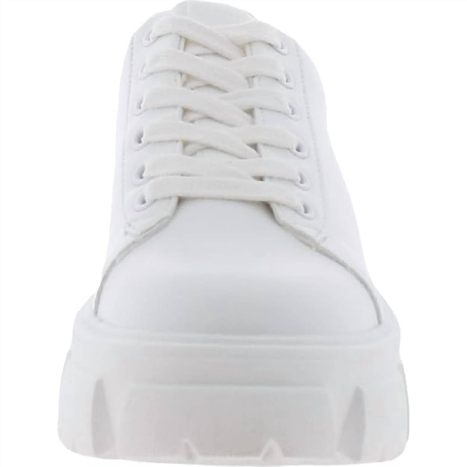 When fashion and function come together seamlessly. Introducing the Women's Michigan Shoe by Steve Madden, a perfect addition to your summer streetwear collection. Crafted in white leather, these sneakers are designed with a round toe and feature a chunky heel style, ideal for concerts and festive Christmas occasions. This pair combines style and comfort, making it a staple for any fashion-forward wardrobe.