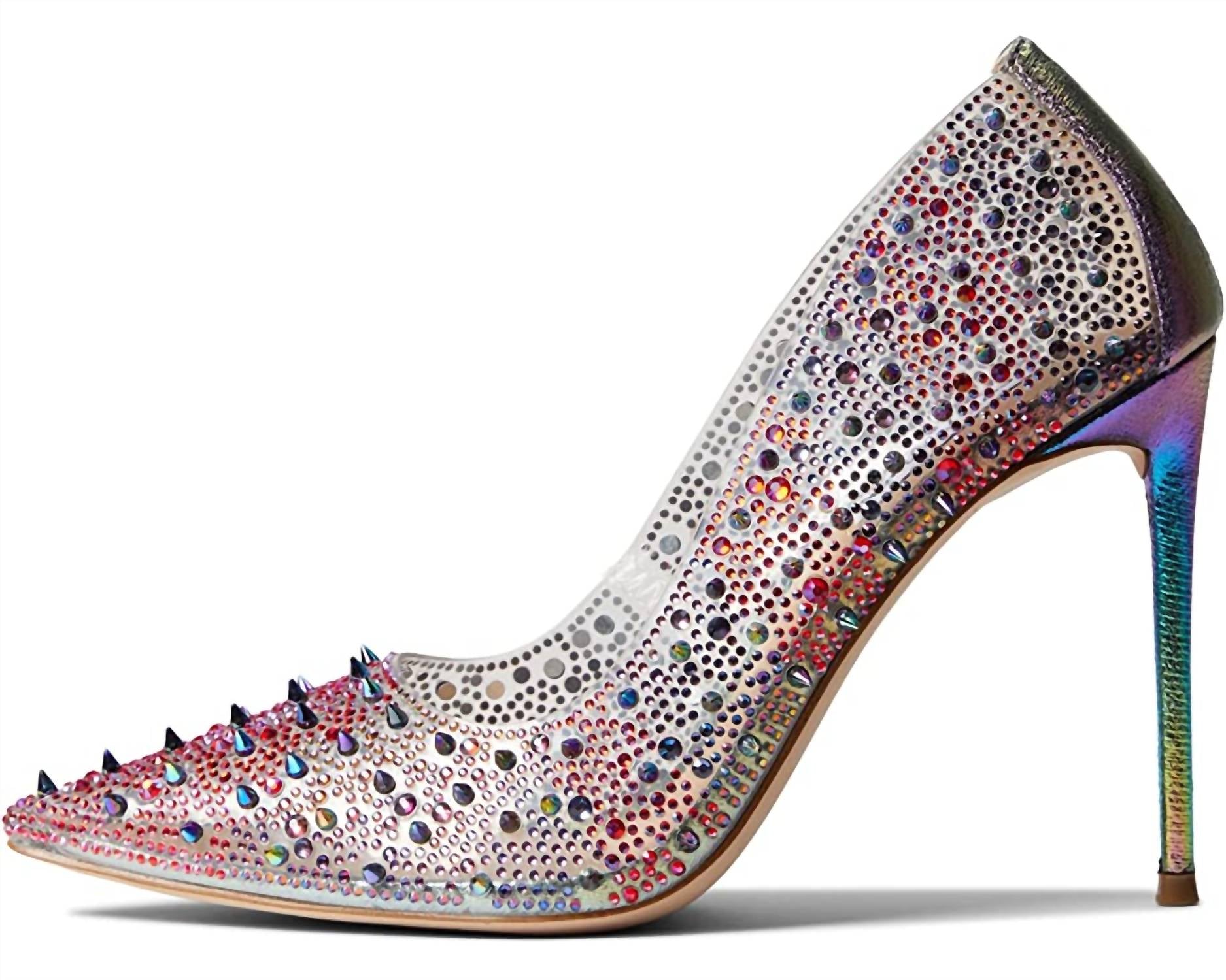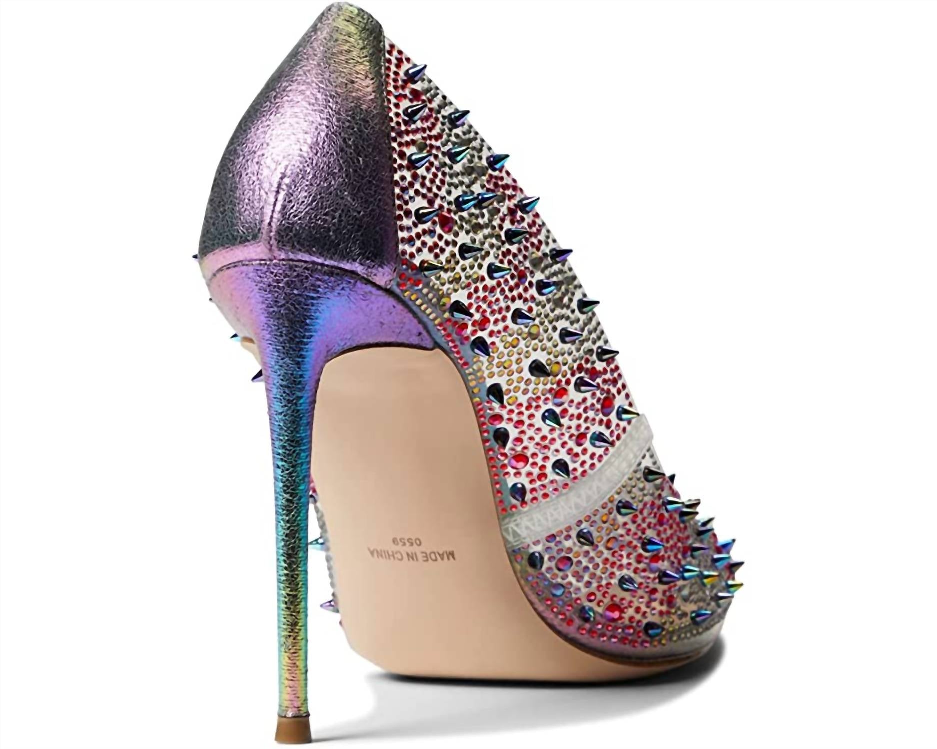 The perfect height for day to night. Synthetic upper. Spike and rhinestone embellishments. Slip-on design. Approx. 4" heel height. Synthetic outsole.