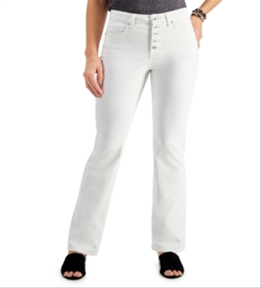 Style & Co gives you a classic staple with these bootcut jeans with five-button closures for added flair. | Approx. inseam; 32-1/2| High rise| Button closures at front; belt loops | Tummy control panel at front| New and improved fit; please reference size chart|