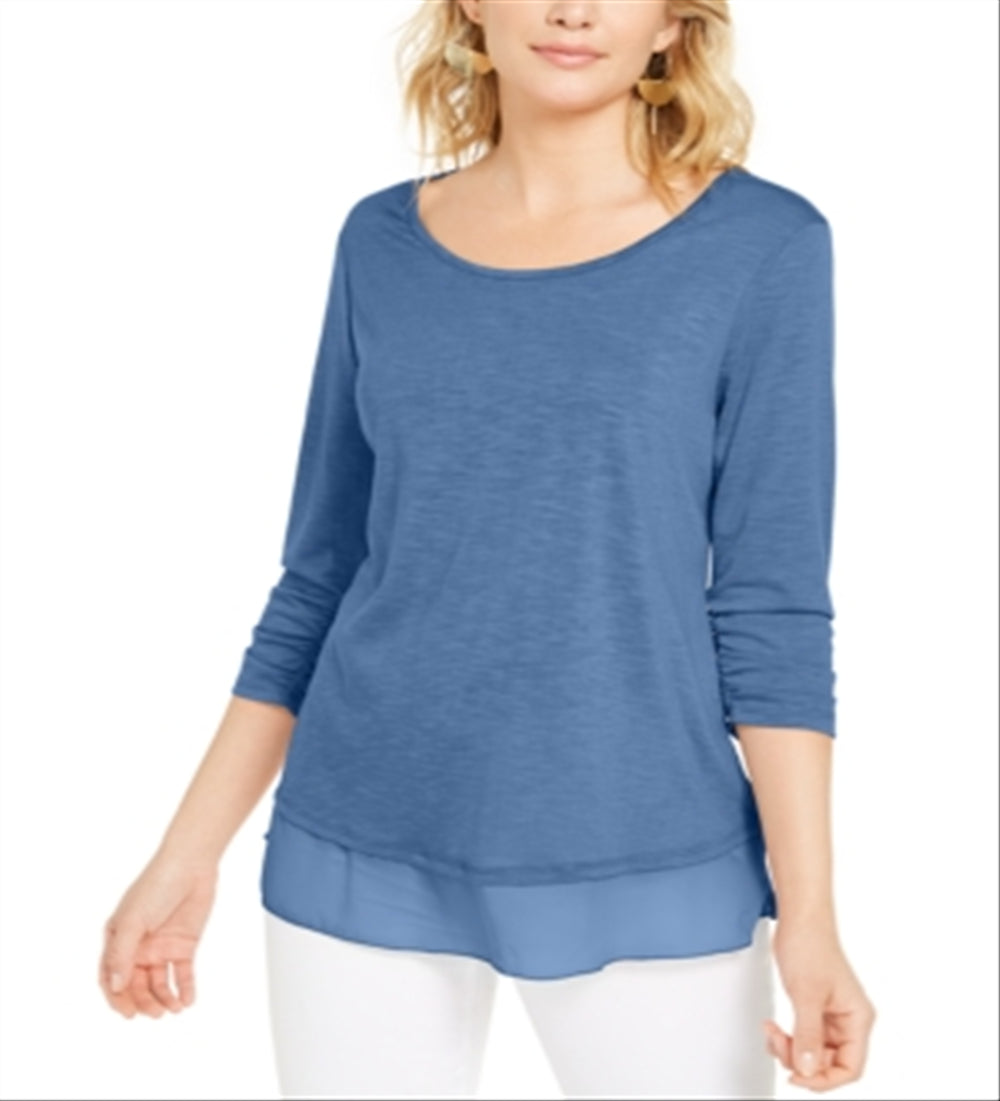 Style & Co Women's Chiffon Hem Top Blue Size XX-Large