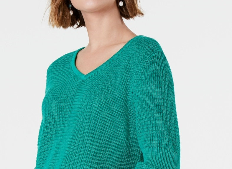 Style & Co Women's Cotton Waffle Stitch Sweater Green Size X-Small