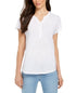 Style & Co Women's Dolman Sleeve Henley Linen Blend Top White Size Small