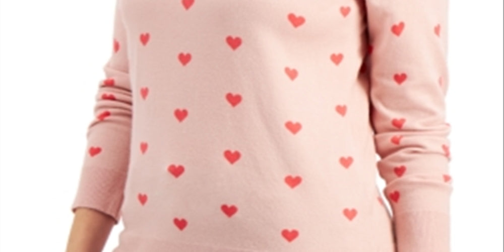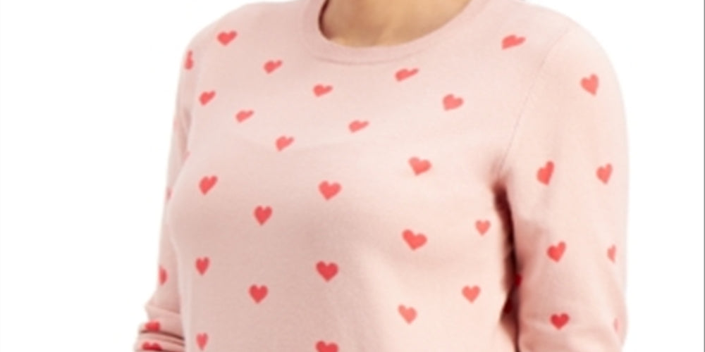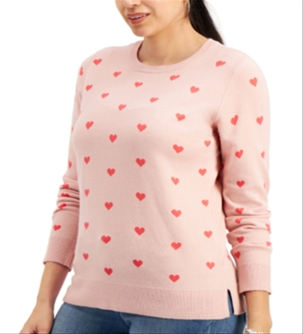 Style & Co Women's Heart Print Pullover Sweater Pink Size Medium