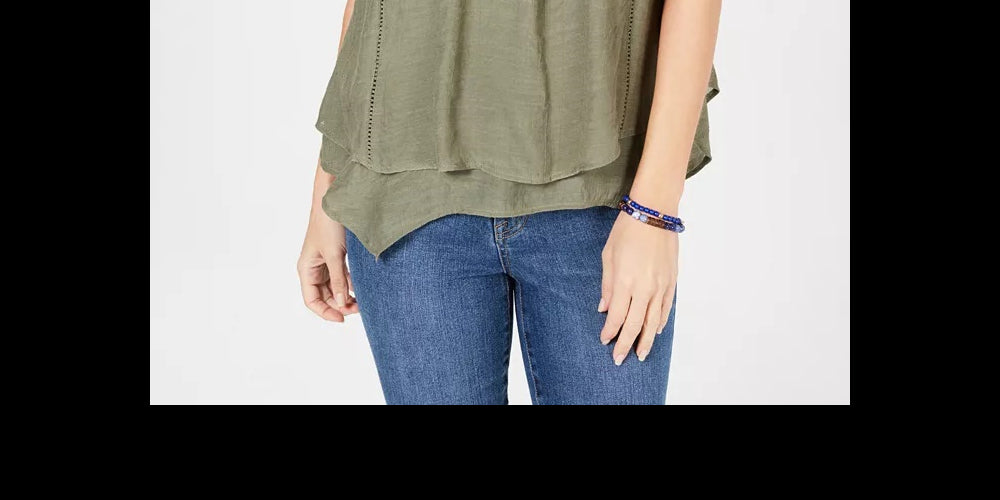 Style & Co Women's Lace Trim Swing Top Beige Size Small
