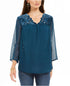 Style & Co Women's Mixed-Media Sheer-Sleeve Blouse Blue Size XX-Large