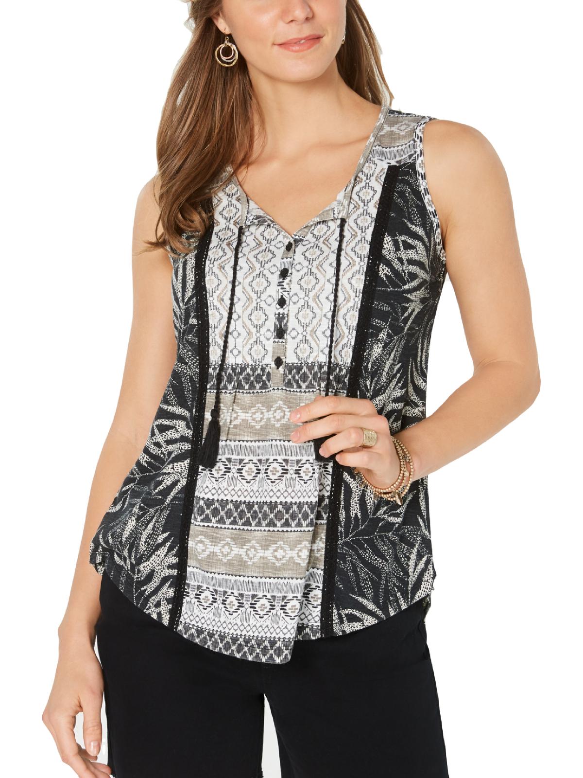 Style & Co Women's Mixed Print Top Black Multi Size PP