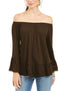 Style & Co Women's Off-The-Shoulder Bell-Sleeve Top Brown Size X-Small