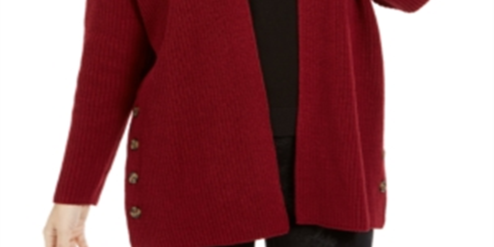 Style & Co Women's Open Front Button Trim Cardigan Wine Size -Petite S