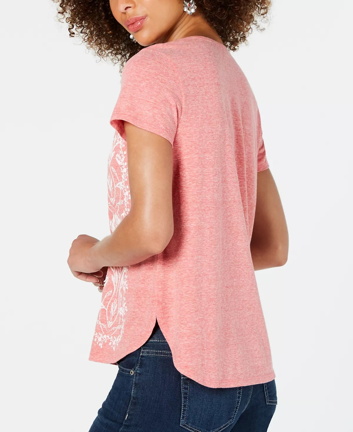 Style & Co Women's Petite Graphic-Print T-Shirt Orange Size PS