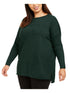 Style & Co Women's Plus Ribbed Trim Seamfront Tunic Sweater Green Size 0X