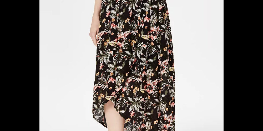 Style & Co Women's Printed High Low Skirt Black Size Small