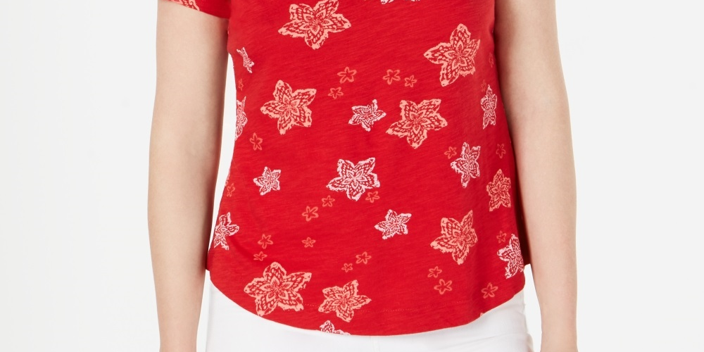 Style & Co Women's Printed V Neck T-Shirt Wine Size Petite Large