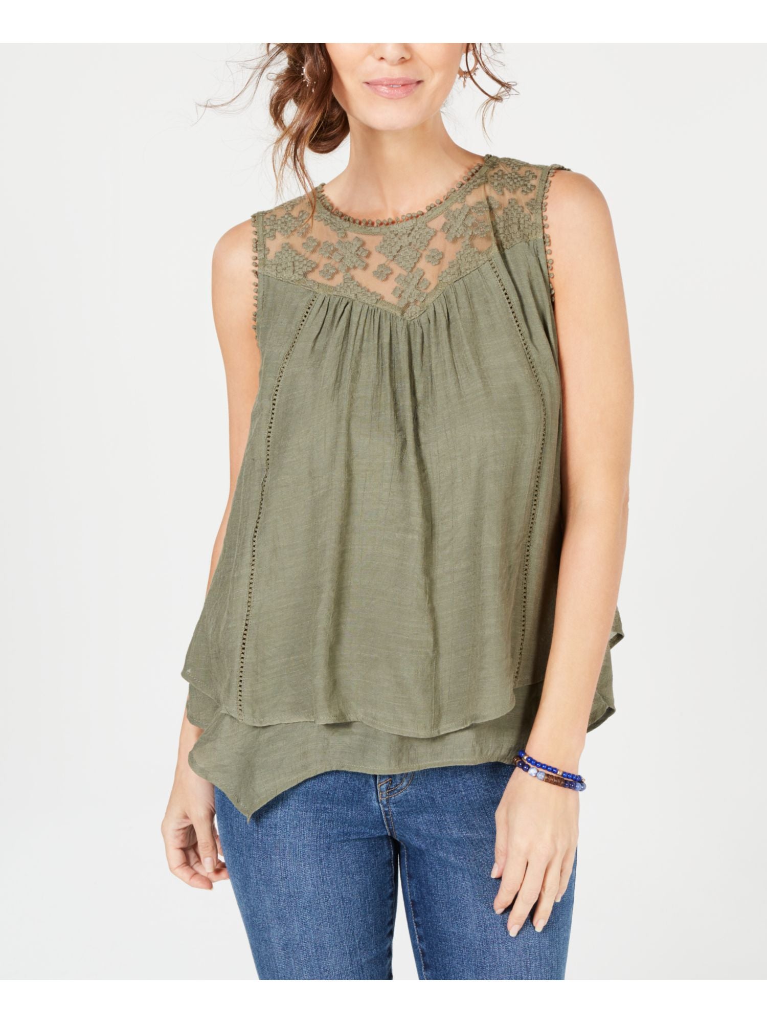 Style & Co Women's Sleeveless Jewel Neck Top Green Size Small