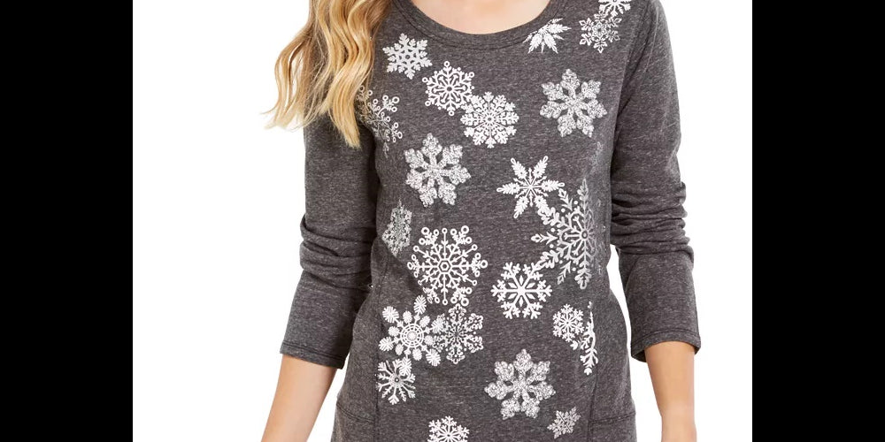 Style & Co Women's Snowflake Embellished Sweatshirt Black Size Medium