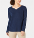 Style & Co Women's Split Neck Cotton Thermal Top Blue Size X-Small