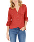 Style & Co Women's Split Neck Roll Tab Sleeve Top Red Size Small
