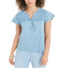 Style & Co Women's Split Neck Top Blue Size XS