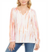 Style & Co Women's Tie Dye Peasant Top Pink Size Medium