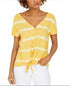 Style & Co Women's Tie Dye Tie Front Top Gold Size Large