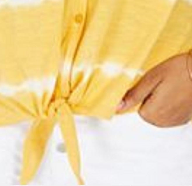 Ask a question about Style & Co Women's Tie Dye Tie Front Top Gold Size Large