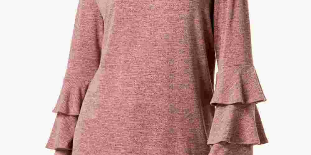 Relaxed fit; hits at hip; approx. 26-1/2" long|Due to generous sizing, we suggest sizing down for the perfect fit|Scoop neckline|Long sleeves with tiered bell cuffs