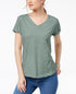 Style & Co Women's V Neck Pocket T-Shirt Green Size PS