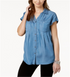 Style & Company Women's Short Sleeve Button up Top Blue Size Small