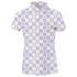 Inject some fun into your golf attire with the Women's Golf Smile Face Polo Shirt by SwingJuice. This ivory top is designed with short sleeves, a ribbed no curl collar, and a four-button closure. Made from bamboo charcoal infused micro polyester, it offers natural odor resistance, quick-dry properties, and UPF 50+ sun protection. Composition: 92% micro poly, 8% Spandex. Care: Machine wash cold, tumble dry low.