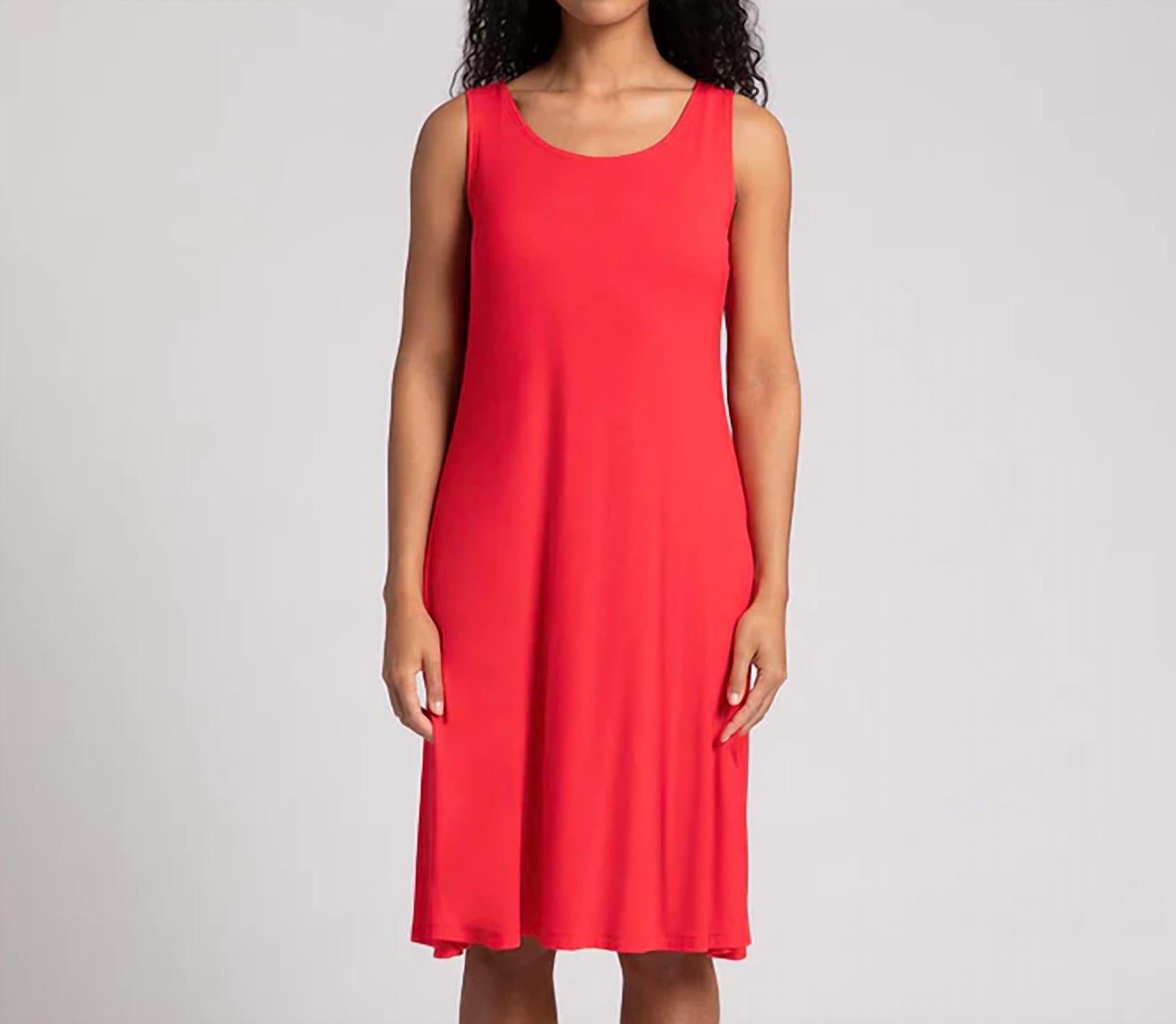 Just add slides or mules and you are good to go. Introducing the Bamboo Tank Dress by Sympli, a breezy essential perfect for summer in a vibrant Lipstick hue. This sleeveless dress, crafted with a composition of 95% Bamboo and 5% Spandex, features a flattering fit and flare shape that moves beautifully. Closure: Pull on. Care: Machine wash in cold water and hang to dry.