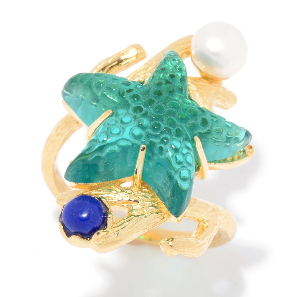 Tagliamonte 18K Gold Plated Starfish Cameo, Cultured Pearl & Lapis Ring
