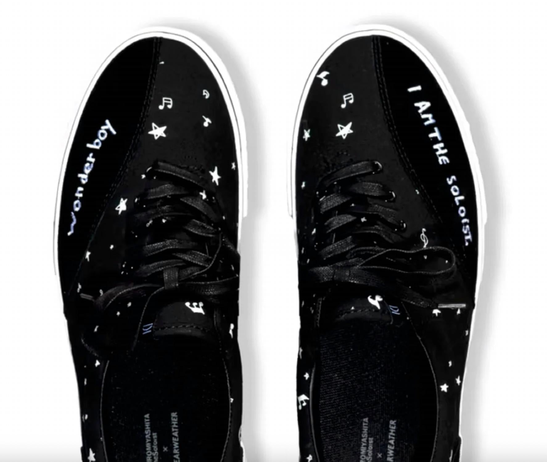 Discover the Mens Lace Up Japanese Cult Designer Sneaker by Takahiromiyashitathesoloist. X Clearweather, an iconic collaboration that combines style and comfort. Originating from China, these black sneakers feature a classic round toe and a flat heel under 1", perfect for summer adventures or New Year's Eve outings. Ideal for the trendy enthusiast, these sneakers are a versatile choice for travel and beyond. Embrace this fusion of artistry and craftsmanship, tailored for the modern adult man.
