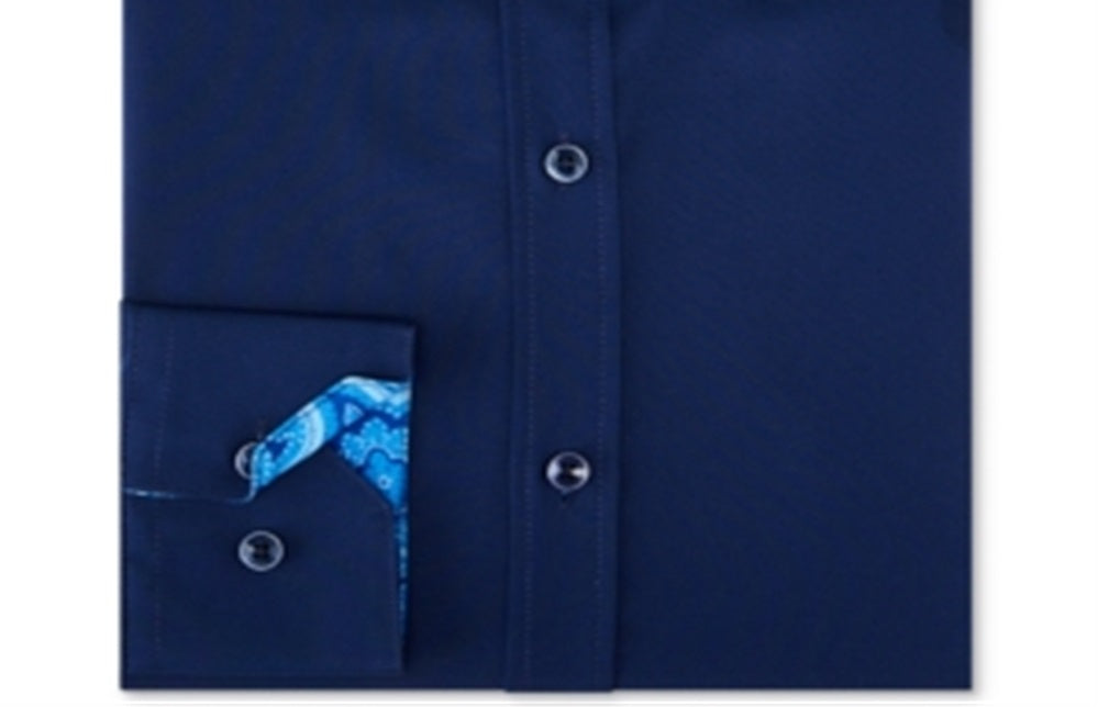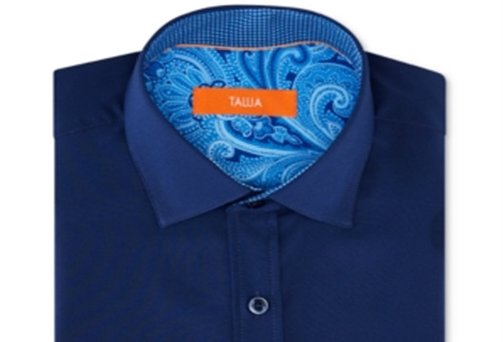 Tallia Men's Patterned Collared Work Dress Shirt Blue Size 32-33
