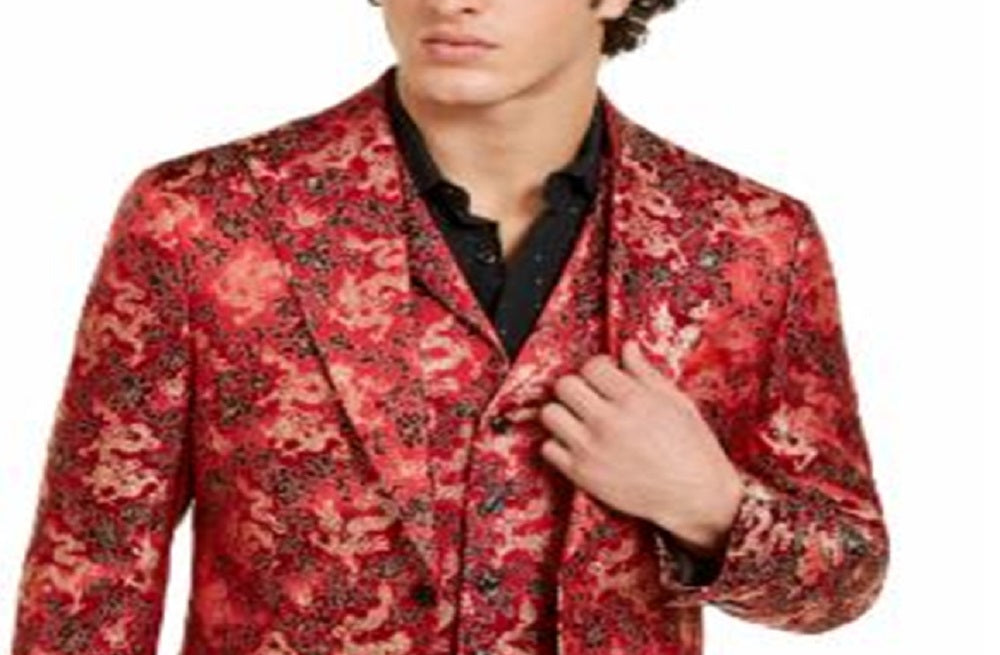 Tallia Men's Short Metallic Dragon Floral Satin Suit Jacket Red Size 42