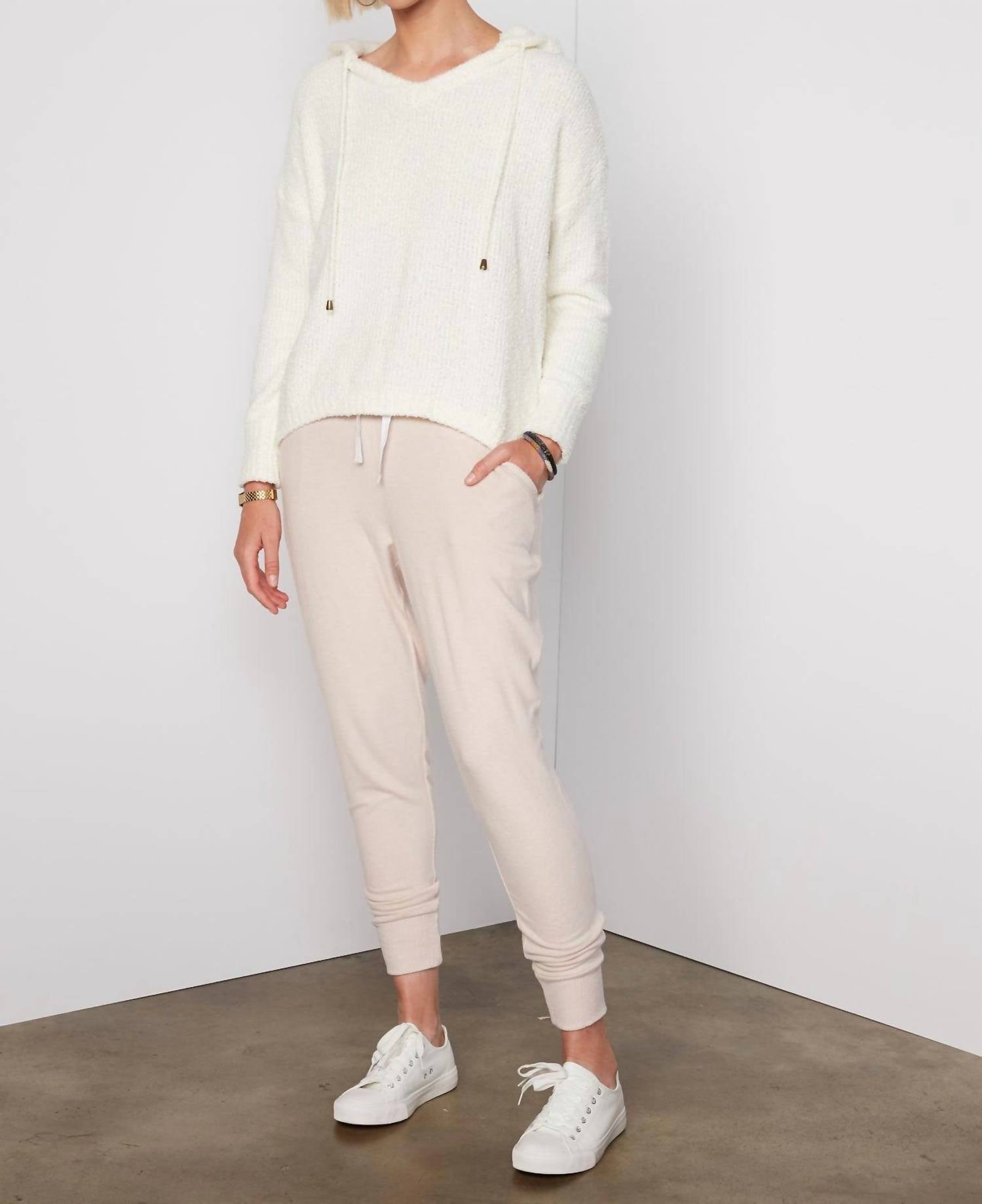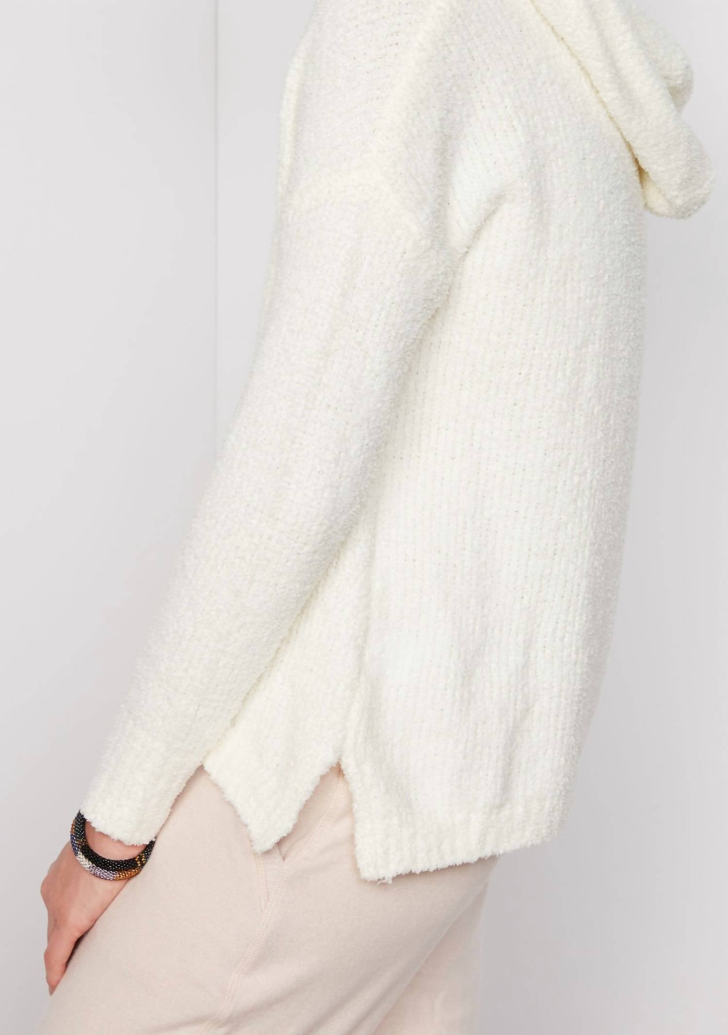 Whether you're running around town or lounging at home, this sweatshirt works for both. The Chance Hoodie by Tart Collections is a must-have hybrid that's equal parts sweater and hoodie, designed in a chic Sea Salt color. This women's piece features cozy long sleeves and is made from plush, 100% polyester knit, ensuring warmth without bulk. It offers a convenient pull-on closure and is meant for dry cleaning only, making maintenance simple. Model is wearing a size x-small (5'10.5" height, 32.5" bust, 23.5" waist, 34.5" hip).