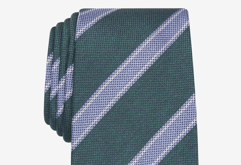 Tasso Elba Men's Classic Stripe Silk Tie Green Size Regular
